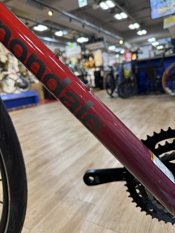 一目見てCANNONDALEだと分かるカラーリング、通常のQUICKとは違い大きなダウンチューブのCANNONDALEの文字、刺さる人にはこれ以上ないくらい刺さる自転車なのではないでしょうか。