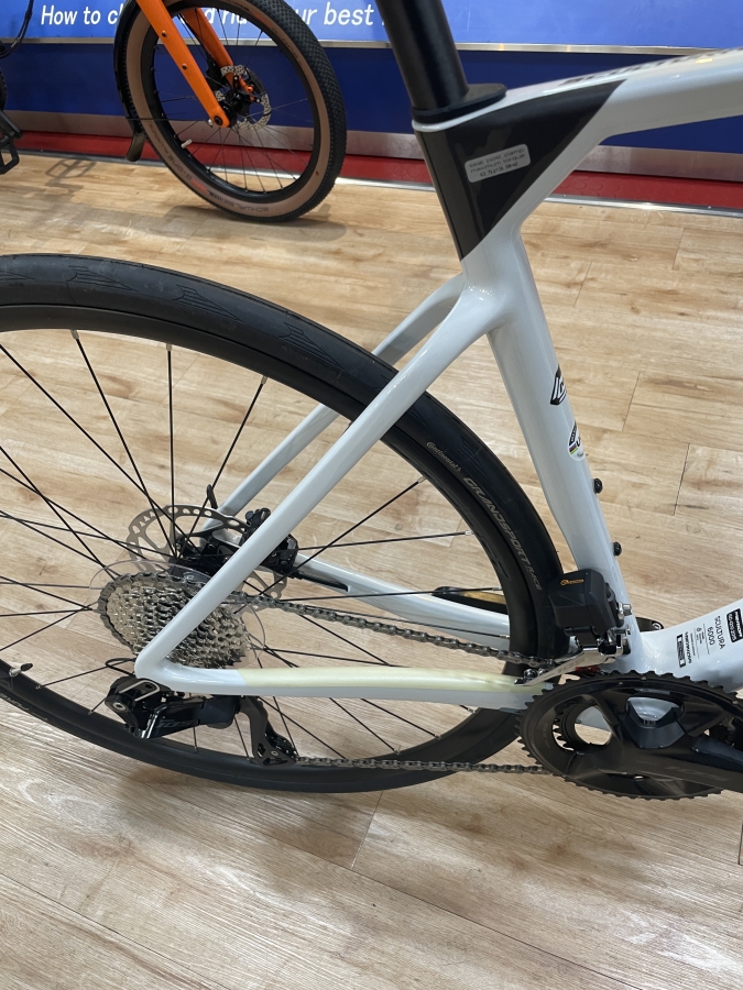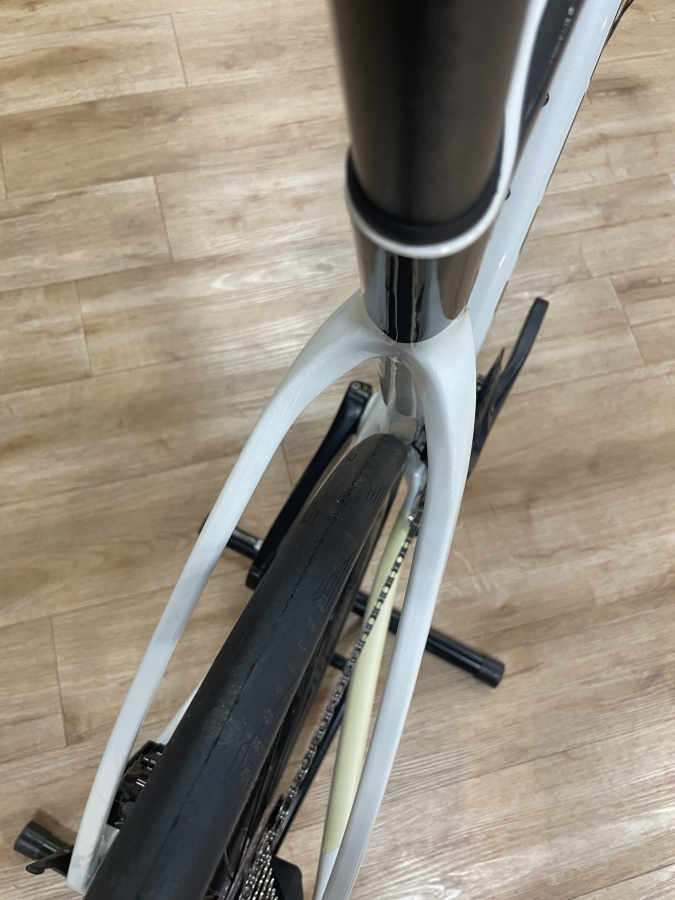フレーム形状は軽さを重視しながら、必要な部分はエアロ形状になっているモダンな設計です。