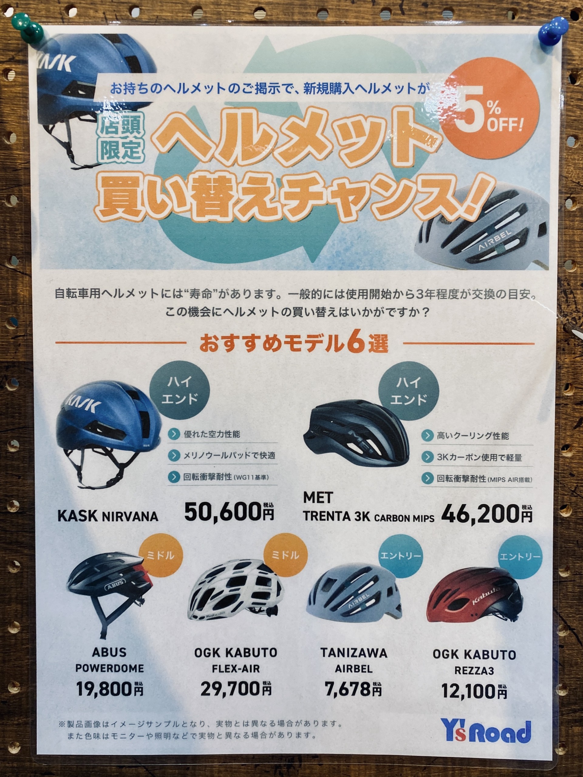 新しいヘルメットを購入される際、今お使いのヘルメットを提示して頂くと特別に5%offでお渡しいたします!これであの憧れのヘルメットに少しでも手が届きやすくなればと願っております!