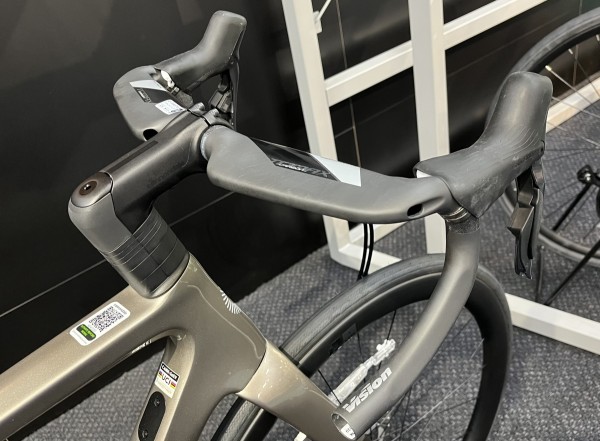ハンドルはエアロ形状かつ軽量・高剛性なカーボン素材のVision Trimax Carbon Aero Barを標準装備。