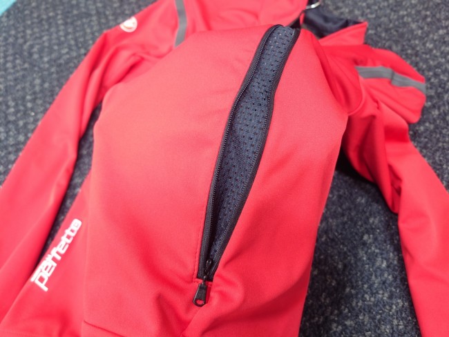 両肩には反射素材も兼ねる雨対策のテープが貼られています。