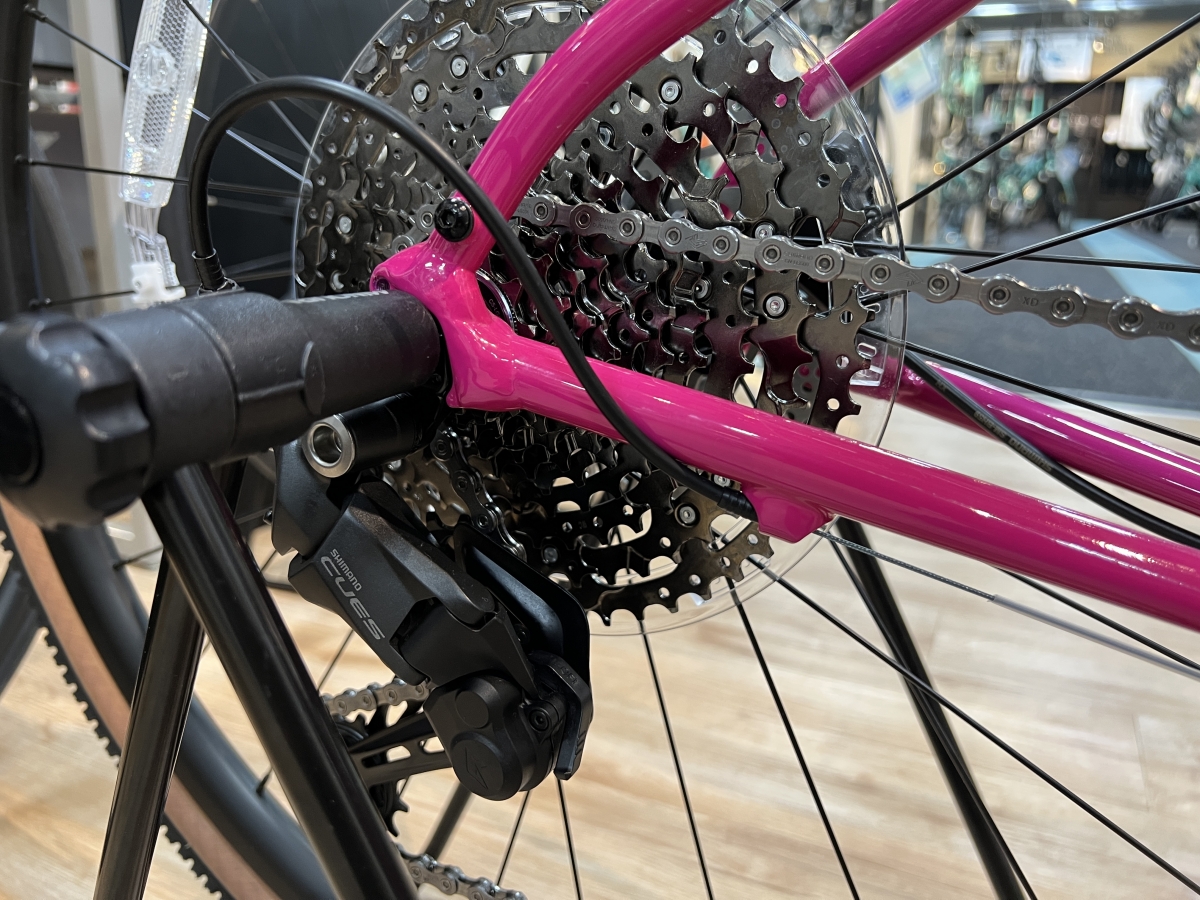シマノの新コンポであるCUESから U6000グループを採用した1×11スピードのアルミグラベルロード。今年度モデルから少々マイナーチェンジされていて、タイヤがクリンチャーからチューブレスレディ対応に、サドルがフィジークからSelle Royalのもちもちとしたショートサドルに変更されています。
