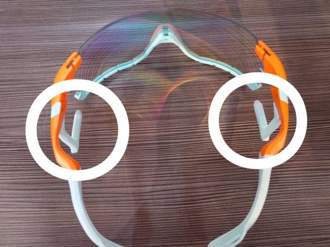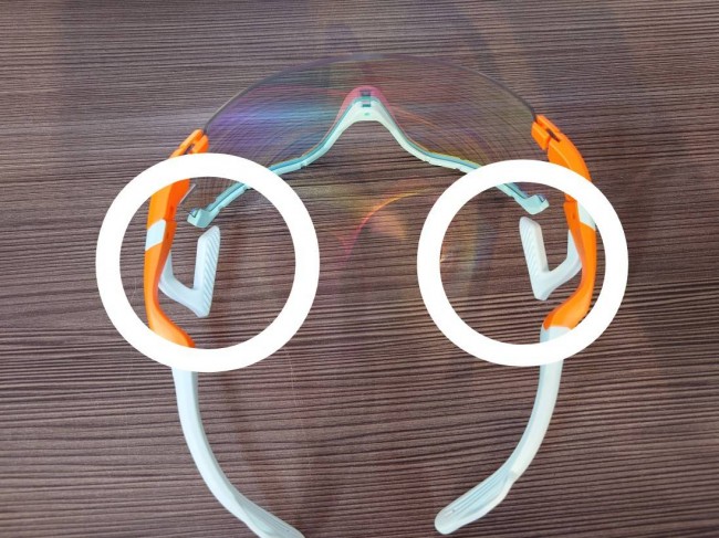 従来のサングラスのような鼻パッドによる視界内でのチラつきがなく、今まで経験したことないようなクリアーで広々とした視界をもたらします。また鼻パッドがないため、走行中に鼻のところからのフレッシュな空気の取り入れられ、レンズ裏の湿った空気を押し出しレンズ外へ排出されます。このようにエアフライはレンズが曇りにくいことも特長です。