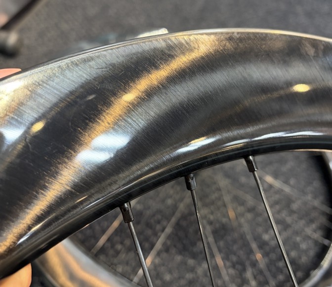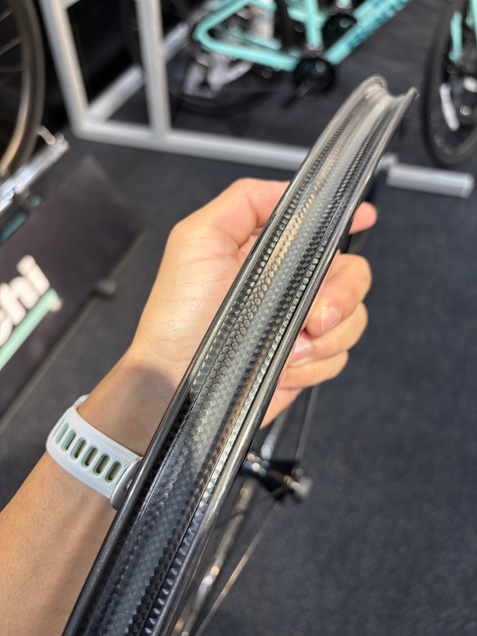 リムのUDカーボンが非常に美しく、見る角度や光の当たり方で表情が大きく変わります。単なる機能的なパーツというだけにとどまらず、バイクを「所有欲を満たす対象」に変えてくれるアイテムです。