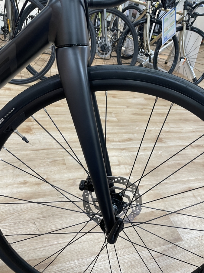 フレームは上位グレード譲りの設計を受け継いだアルミロードです。