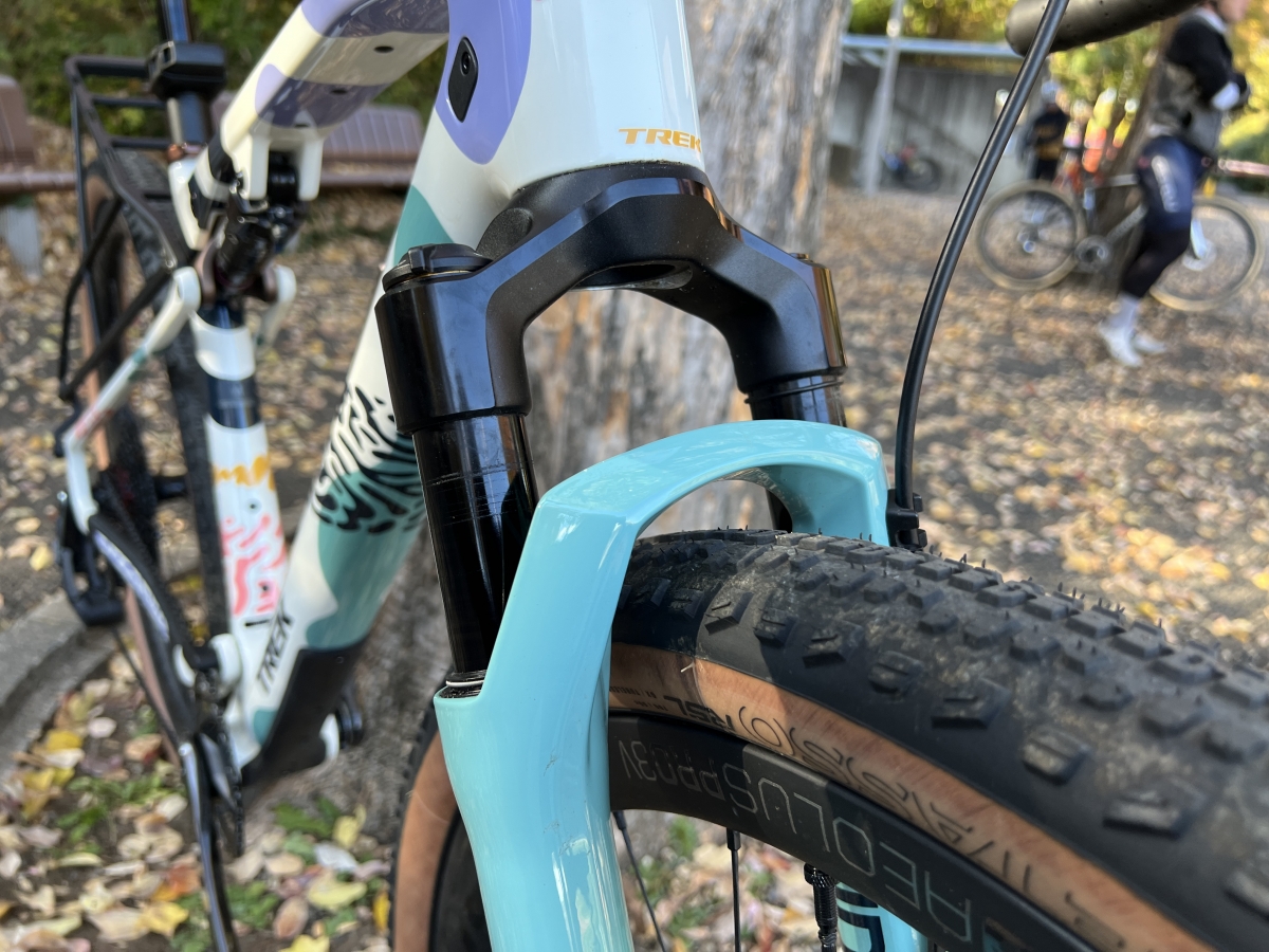 リアサスペンションは IsoStrut構造のSIDluxe Ultimate。こちらもTREKのクロカンバイクではおなじみのモデルですね、試乗中は特に荒れた路面などないのですがロックアウトしたいなと思う場面はありませんでした。あくまで大きな衝撃を受けたときに動く感じなので腰砕け感はないです。