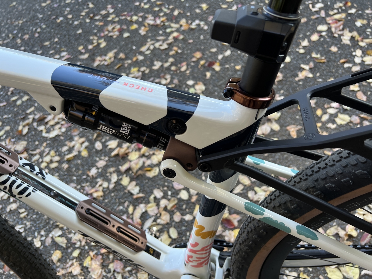 CheckOUTの上位モデルであるSL7はとにかくバイクに乗るのが楽しいフルサスペンショングラベルロードバイクです。ROCKSHOXの前後サスペンションを備えながら、利便性と操作性を兼ね備えた最新のSRAM AXSコンポで統一され、AEOLUS PRO3Vカーボンホイールを装備。ダボ穴も数多く配備されているのに加えて専用設計の軽量ラック迄込みの設計をしているので長距離バイクパッキングやアドベンチャーライドを楽しむ方は特に楽しめそうな内容になっています。