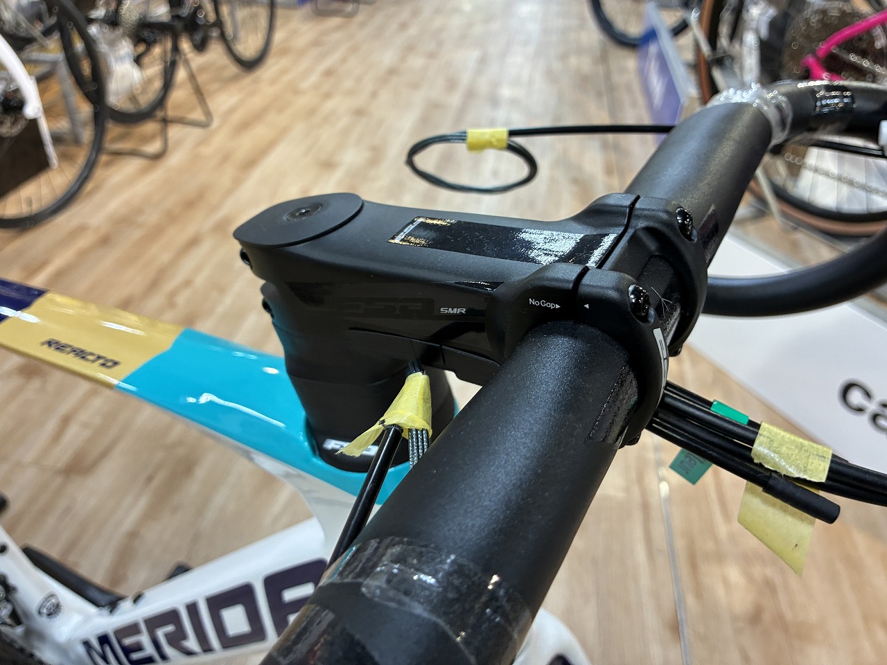 ヘッド周りはFSA規格を採用しワイヤー類が内装される構造で見た目もスッキリし更にエアロ化を果たしています。