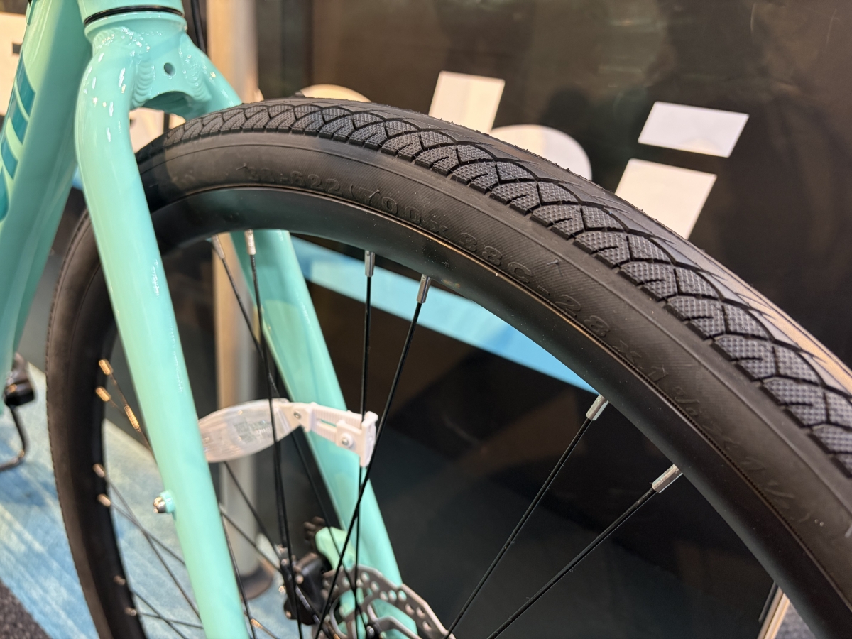 タイヤサイズは700x38cと太めの設定なので街乗りも快適に。