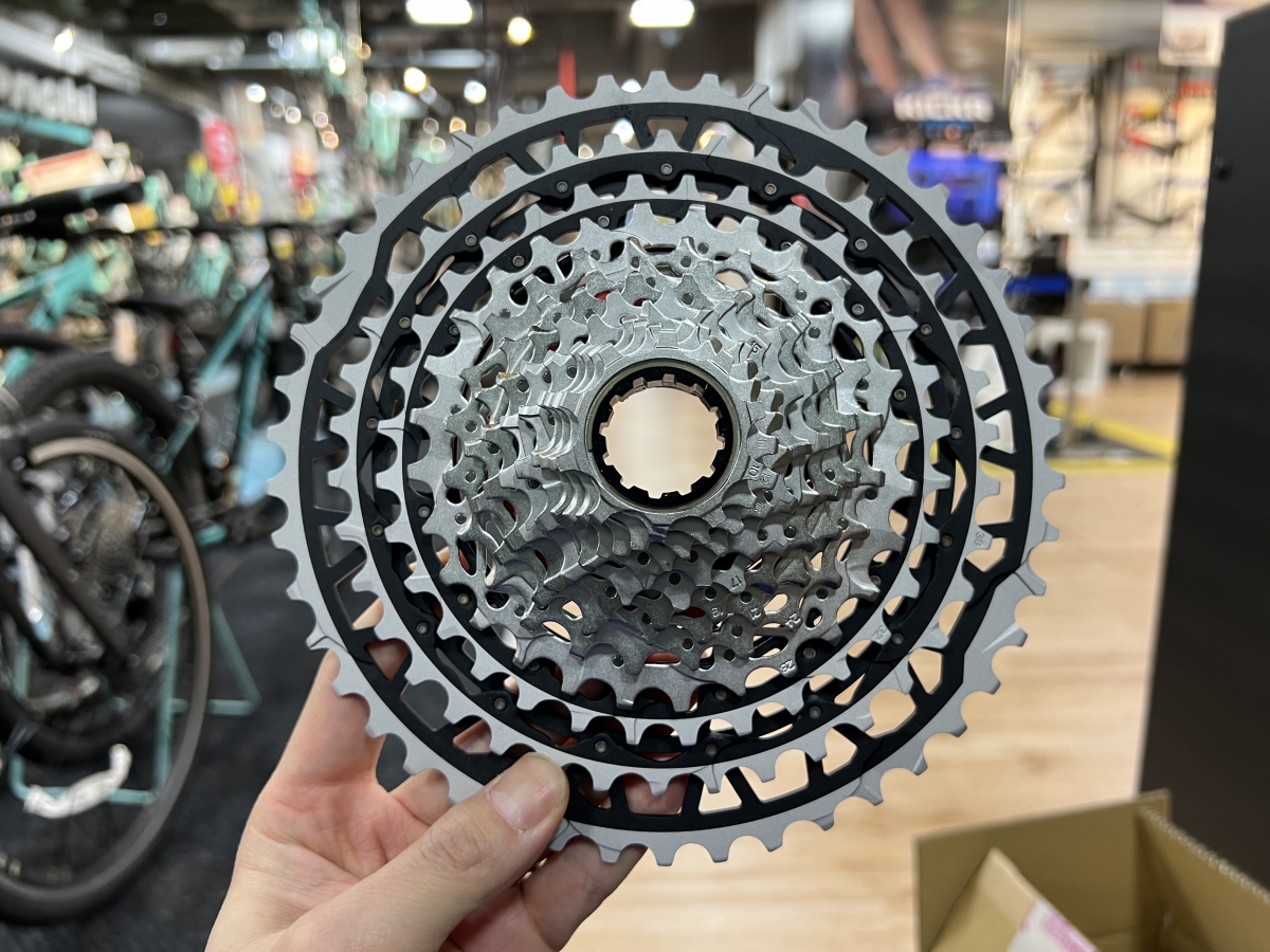 UDHフルマウント専用設計で1×13速の完全ワイヤレスコンポーネント!グラベル専用ということで飛びつかずにいられず・・・糸島試乗会で乗らせていただいたTerra Raceに採用されていたのが決め手でした。一度触ってしまうと病みつきですね。