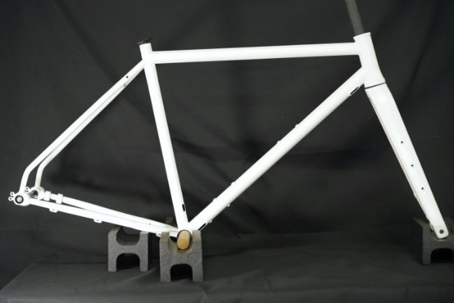 で肝心のフレームは何なのさというとYuris様取り扱いのSingerのグラベルフレーム、lunchrideという名前のものになります。クロモリのグラベルでUDH、フォークはカーボンでケーブル外通し、ダボ穴たっぷりのマルチユース仕様だそうです。今現在公開されている情報ですと