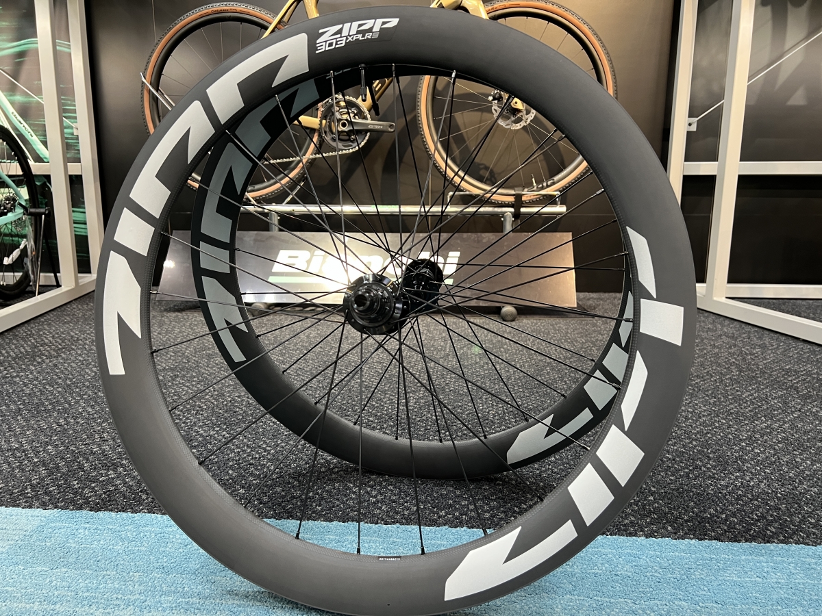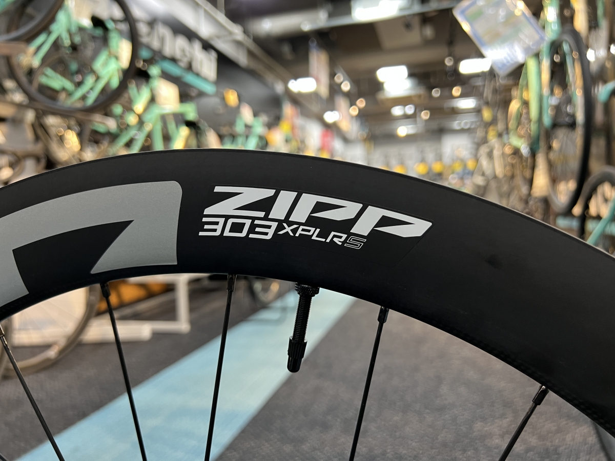 私がチョイスしたのはアメリカ、インディアナポリスに本社と製造拠点を持つコンポーネントメーカー「ZIPP」の303 XPLR Sです。その特徴はなんといっても内幅外幅の太さ!リム内幅32mm、外幅40mmのメリットはタイヤがリムと接する部分がワイドになるので低圧でもタイヤがよれづらく、低圧なので快適性もトラクションも向上します。しかもタイヤとの段差が無いのでエアロな形状に加えてホイール自体が50mmの高リムハイトと、意外といいことづくめなんです。