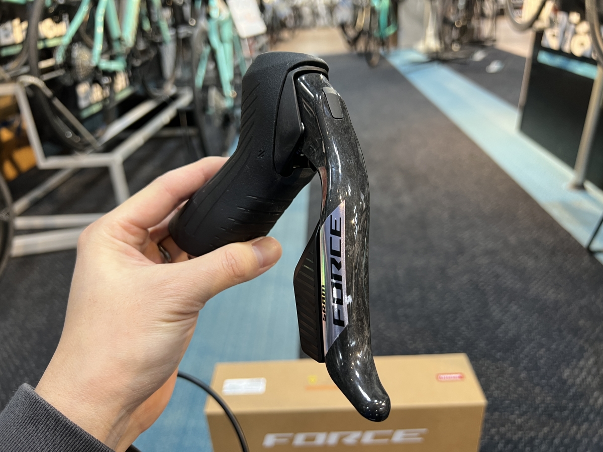 ブレーキも肉抜きされてREDの形状を踏襲しています。パッドクリアランスも改善され、軽量化しています。AXSの全製品で互換があるため、D1、D2世代をお使いの方でもこのレバーとブレーキのセットだけでも交換するとかなり性能の向上になると思います。