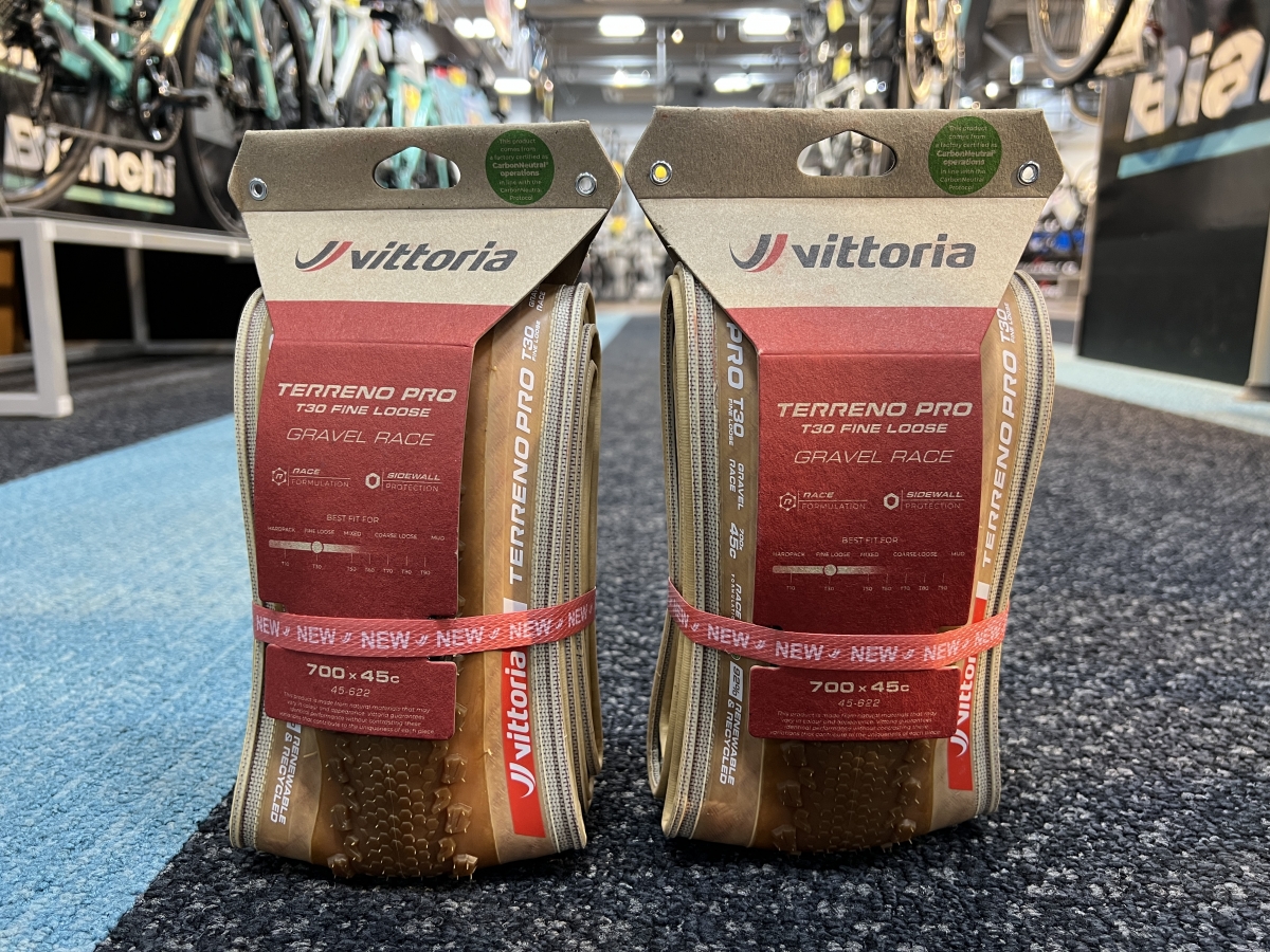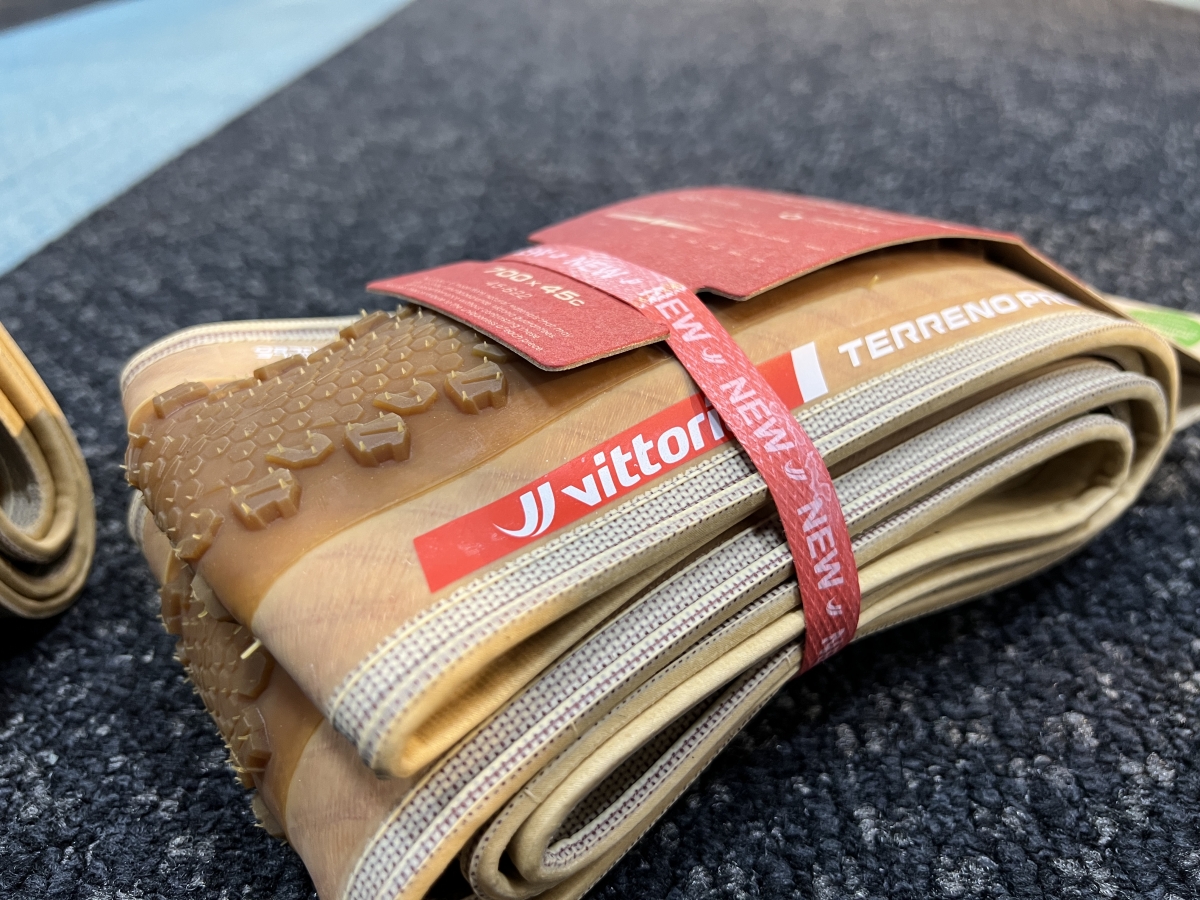 タイヤは前試乗したOQUOについてたTerreno T30(旧称Terreno Dry)にする予定でしたが、互換リストに載っているサイズが50Cオンリー。40C、もしくは45Cで運用しようと思っていたのと使用予定のフレームのクリアランスにはオーバーサイズだったのでどうしようか考えていたところにレース用コンパウンドとしてTerreno Proシリーズが発表され、こちらは45Cがリストインしていたので選んでみました。