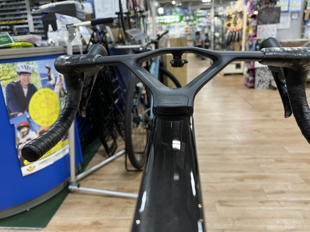 過酷なプロロードレースのシーンで求められる空力性能のベンチマーク的な存在がサーヴェロのS5です。2025年に新型となったフレームは前作と比較して-6.3Wの削減、重量は124gの削減とかなり大きく性能が向上しています。変化の要はフロントフォークとヘッドチューブ、形状がより奥行きのある形状になり空力性能が更に有利になりました。また一体型ハンドルも「プラスフォー」というコンセプトの通りいづれのサイズもブラケットフード部からドロップ部まで+4cmの幅の広がりがあり、高速巡行時はポジションをコンパクトにしダウンヒルでは安定感をもって操作することができます。