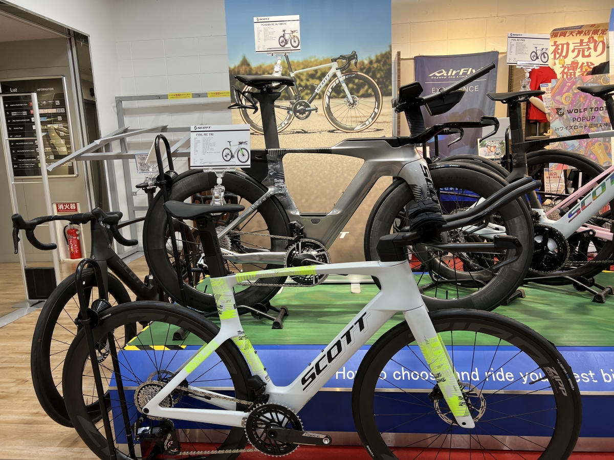 やはり目玉はPLASMAでしょうか、こちらのフレームはトライアスロン専用フレームとなっていますのでタイムトライアルには使用できないのですがその代わりフレームと一体化した多数のストレージでバイクの空力性能を極限まで高めています。試乗も展示車の見学もお待ちしています!お気軽にお立ち寄りください。
