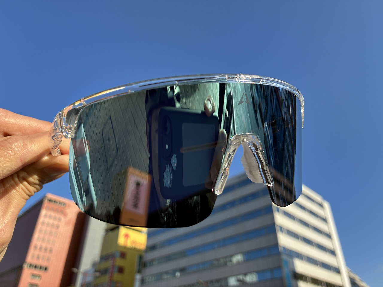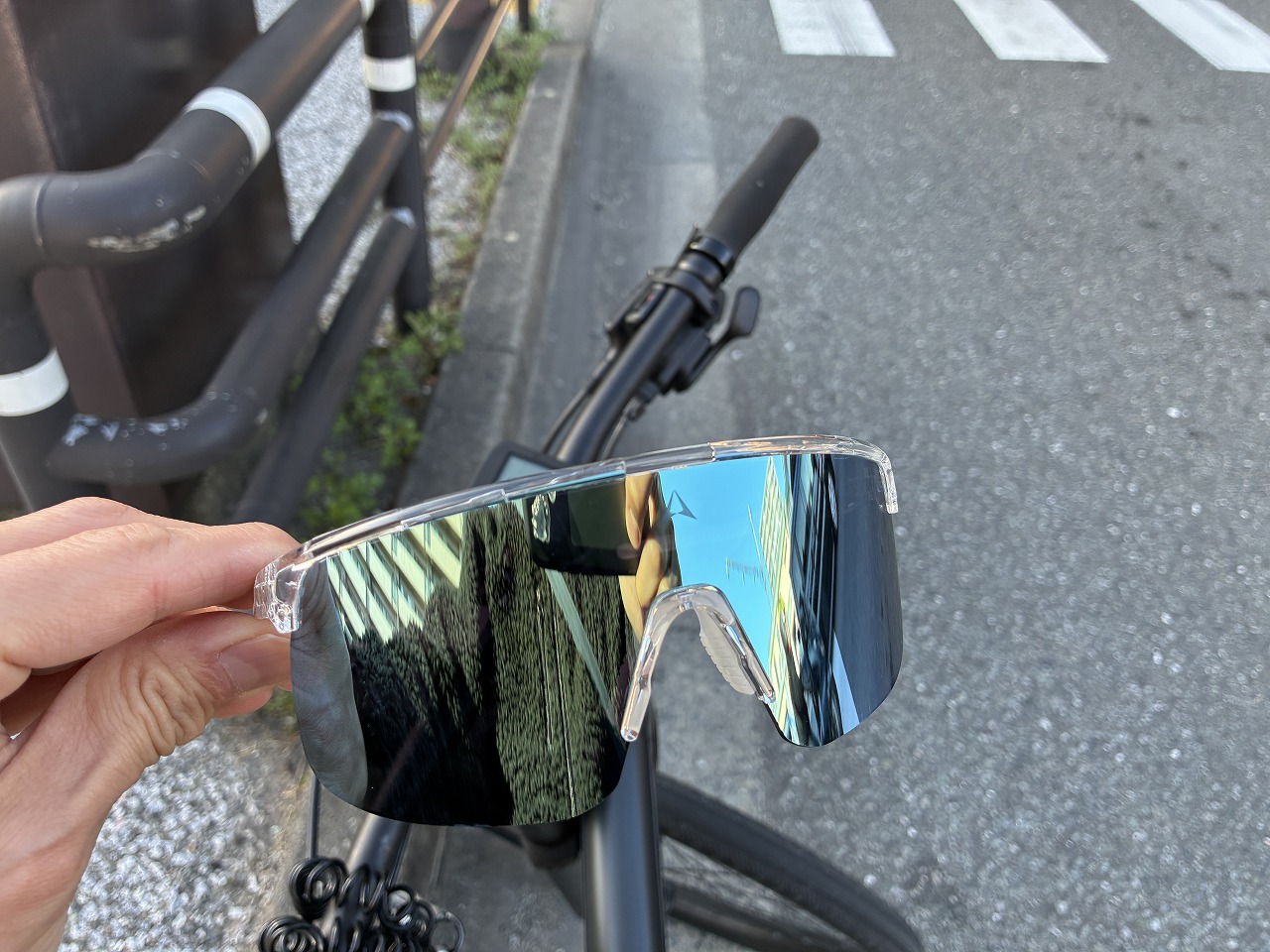 公道に出て少し経つと紫外線量に合わせレンズの濃さが変わり、眩しくないように必要な分レンズが濃くなってきました。