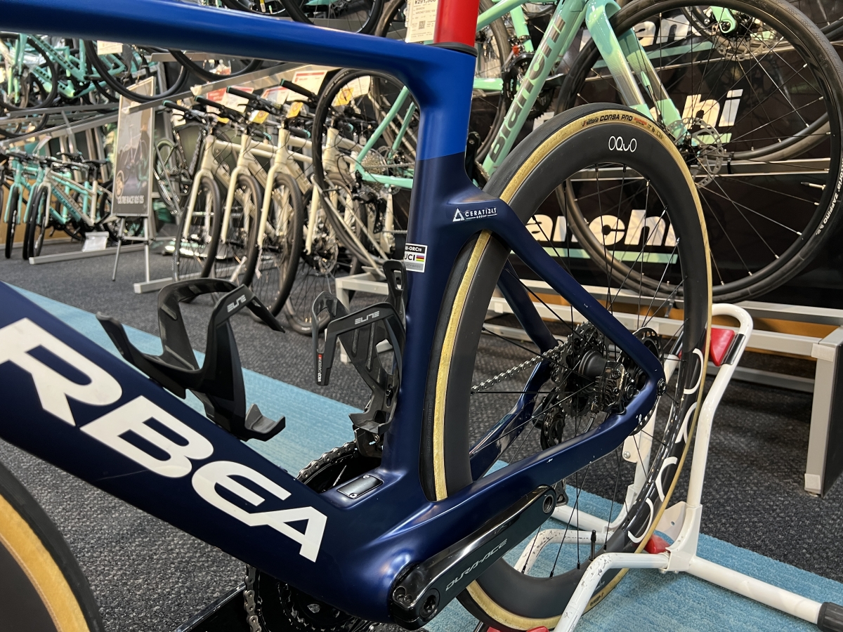 フレームは現行のOrca Aero OMX、R9270 Dura-Ace、OQUO RP45TEAMで4iiiのパワーメーターも付いています。内容としては大体定価で130万円くらいの内容かと思います。こちらは