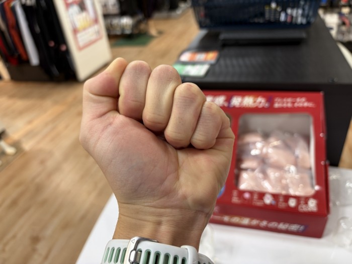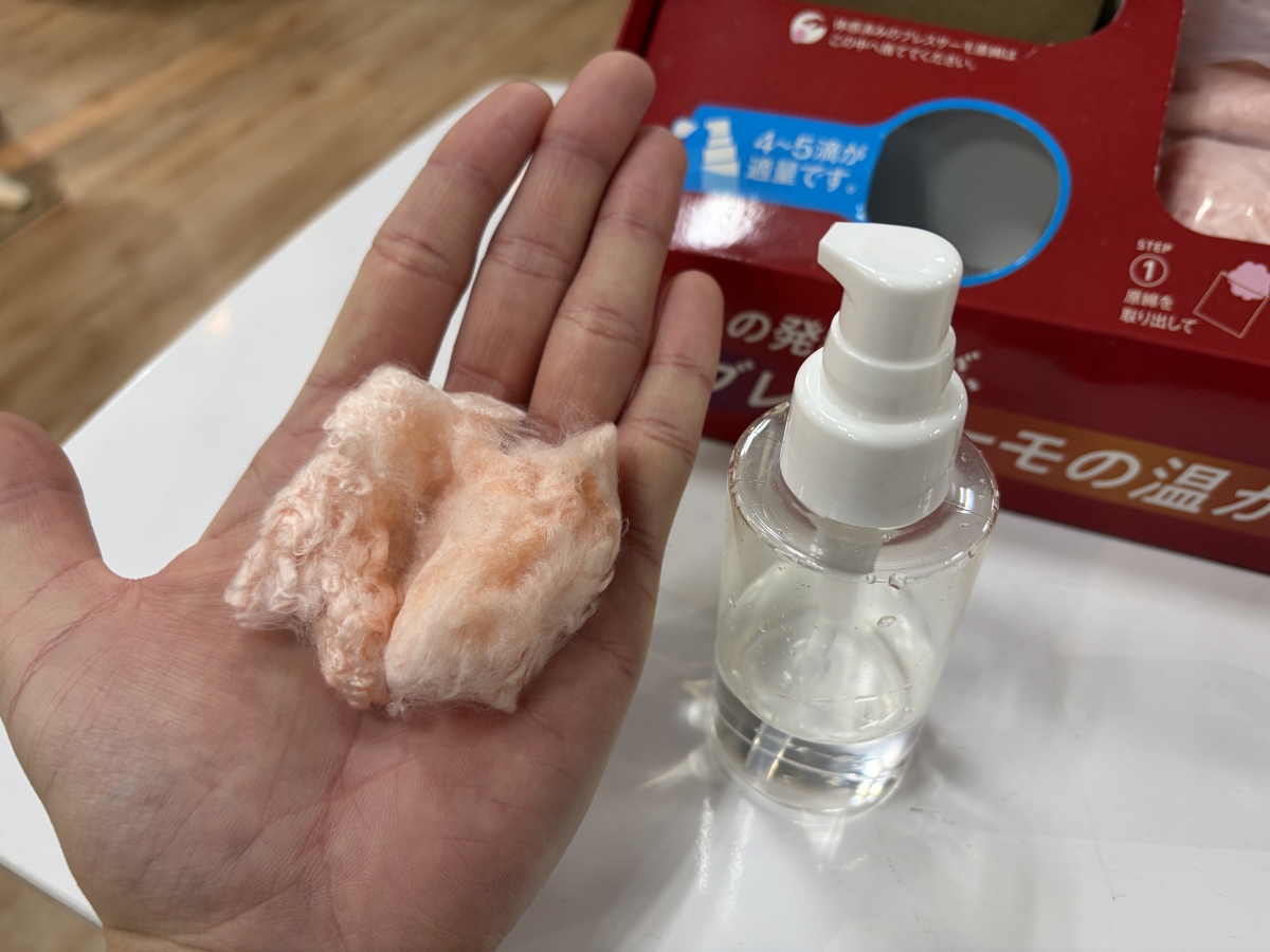 店頭にブレスサーモの原綿があるので、実際にどれくらいの体感が出るのか試してみました!