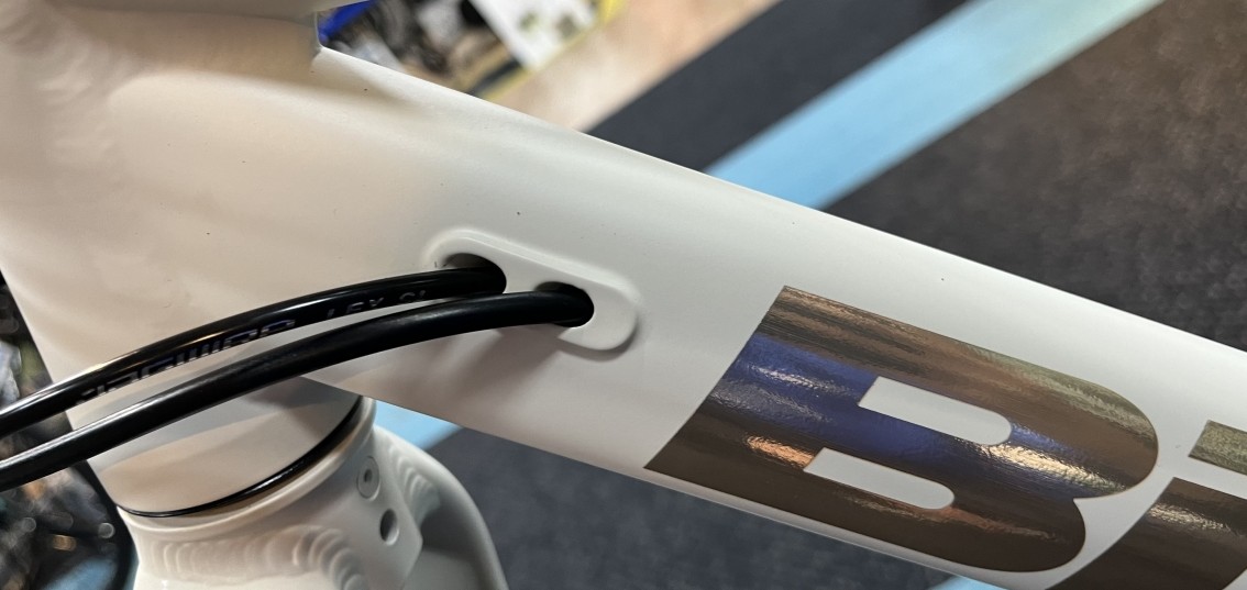 ブレーキ・ケーブル類はダウンチューブの上部からフレーム内部に内装されており、中のワイヤーが錆びにくく、すっきりとした見た目になっています。