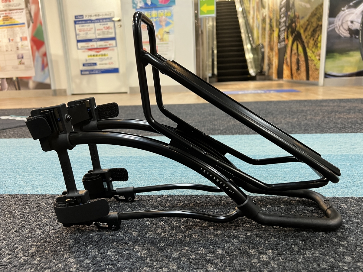強力なベルクロストラップによって着脱可能なキャリアシリーズがトピークのテトララックシリーズ。これまでもR(ロード用)とM(MTB用)が販売されていましたがそちらにGR(グラベルロード用)が追加されました。いずれのシリーズもタイヤクリアランスに合わせて形状が異なりますのでお使いのタイヤサイズに応じて選びましょう。勿論形が合えばGRをロードにつけるのも全然OKです。GRは50mmのクリアランスまで対応です。