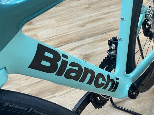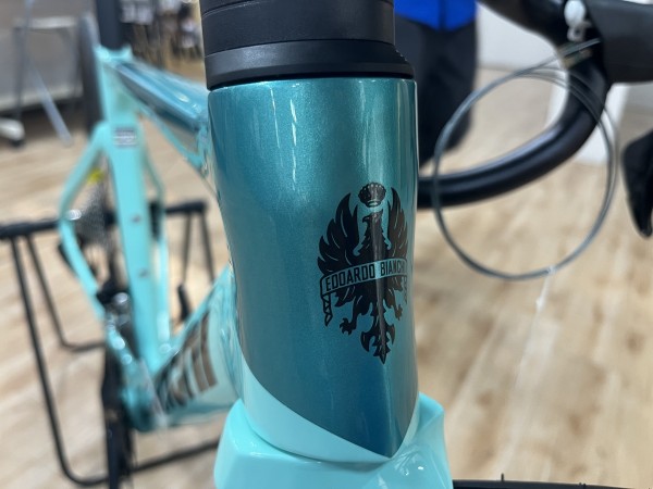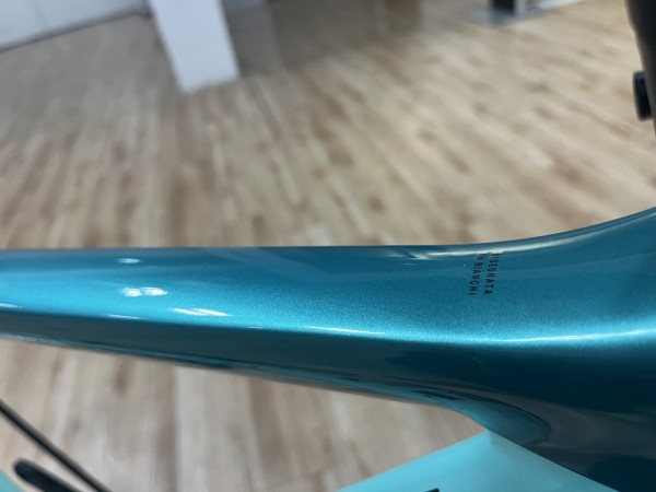 こちらの車体はラメの入った濃いターコイズブルーとBIANCHIを代表するチェレステカラーのミックスでペイントされた艶のある車体になっています。