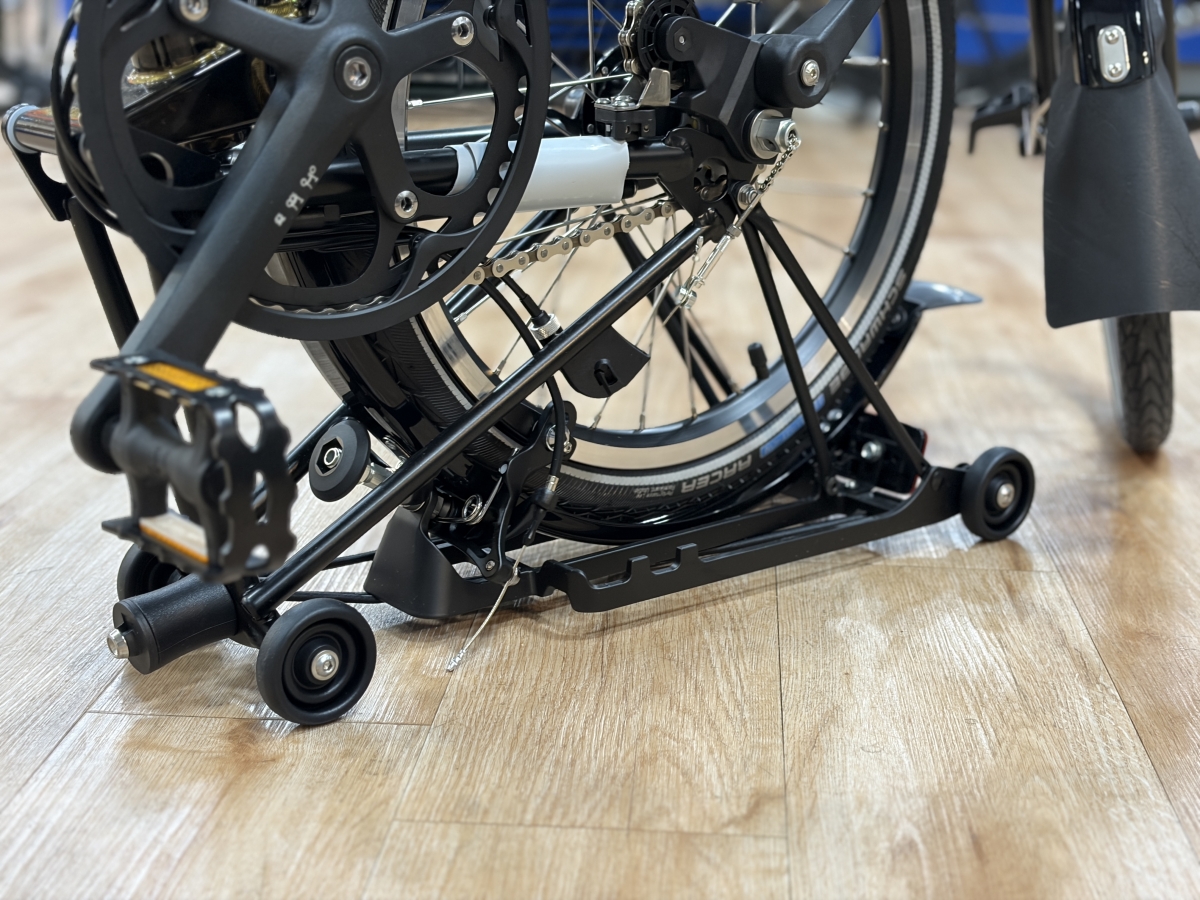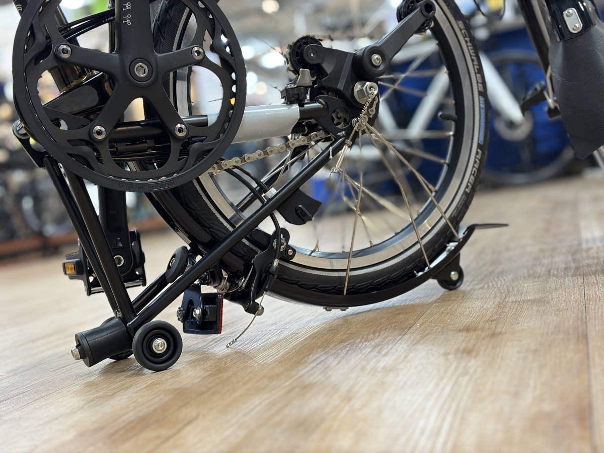 「道具として使う」ことが重視されているBROMPTONのバイクとして、使っていて非常に気分が上がるカラーだと思います。オプションパーツ含め黒でまとめればシックに締まり、差し色を少し入れれば一気に映えることでしょう。服装を選ばないのに、無難で終わらないのがこのBlack Lacquerというカラーです。