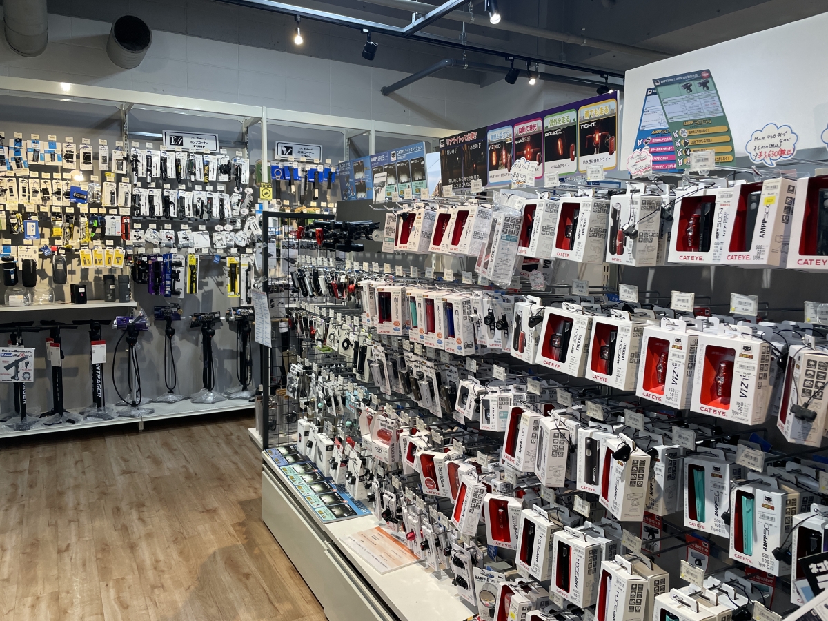 車体と同時に購入していただくと、ライトや鍵などのパーツやヘルメットやウェアなどが10%オフになるキャンペーンを実施中です。