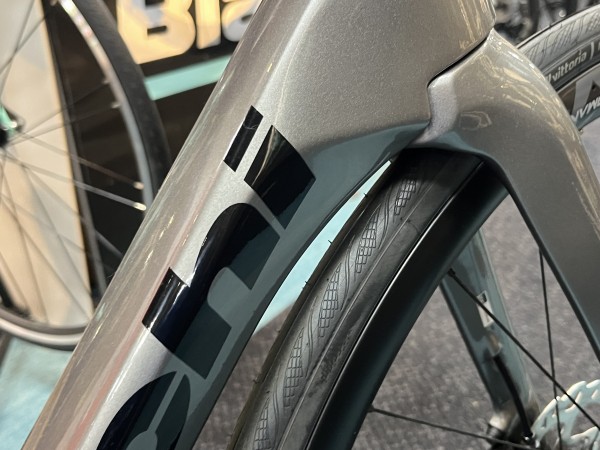 Bianchi SPECIALISSIMA COMPはエアロを取り入れた軽量オールラウンドモデルになっており、最新トレンドがてんこ盛りになった一台です。各部に空力を意識したカムテール形状が採用されており、非常に完成された設計になっています。