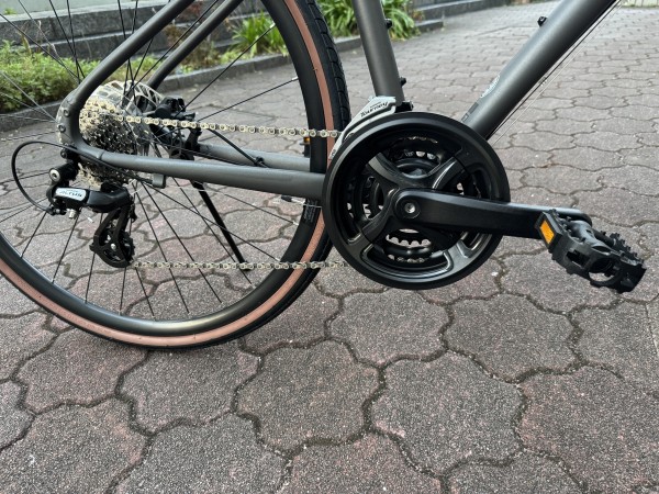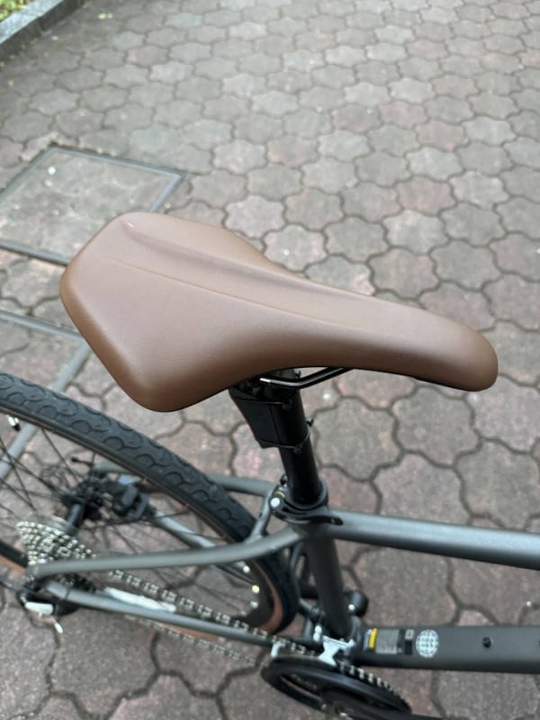 フレームカラーのチャコールグレーと所々に彩られたブラウンが非常にマッチしてこの上なく美しいクロスバイクに仕上がっています。