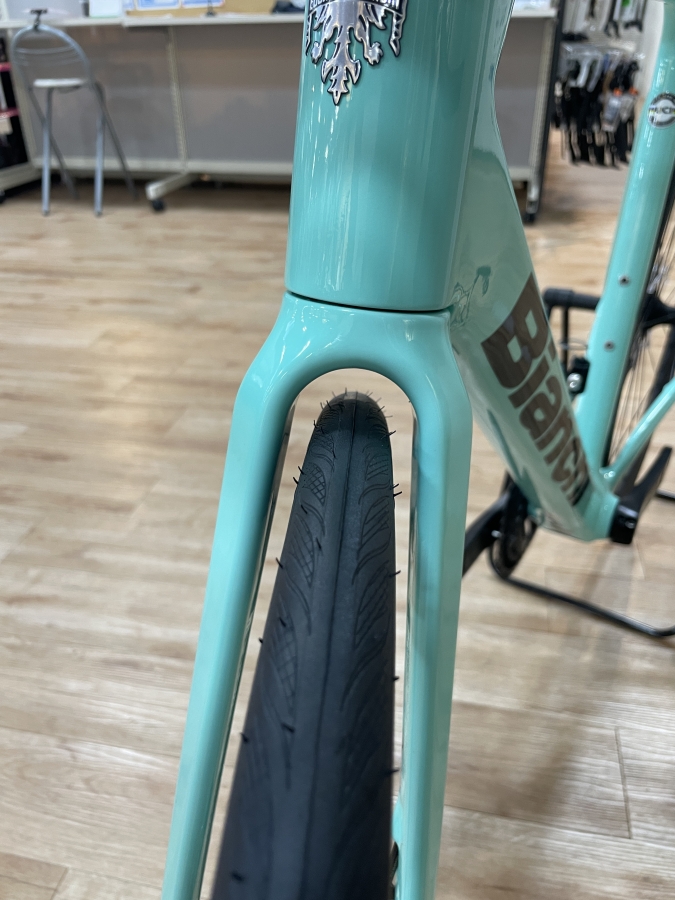 タイヤは32㎜までクリアランスがあり、太めのタイヤで快適性アップも狙えます。