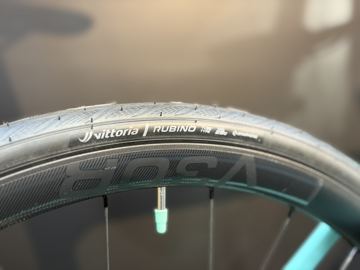 太すぎず細すぎず、日常のライドからロングライドまで扱いやすいのが魅力。初めてのロードバイクとしても安心で、これから距離を伸ばしていきたい方にも相性の良い仕様です。