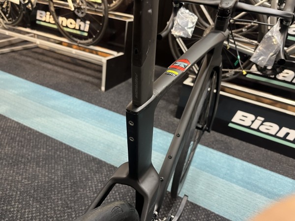 シートポスも前作まで内に入っていたDI2のバッテリーがBB横の設置される設計になったため、UCIのレギュレーションぎりぎりまで薄くなっています。