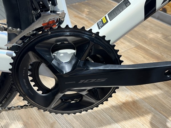 コンポーネントは最新のシマノ105機械式 12速 油圧ディスクブレーキが搭載されており、安心のブレーキングとスムーズな変速です。