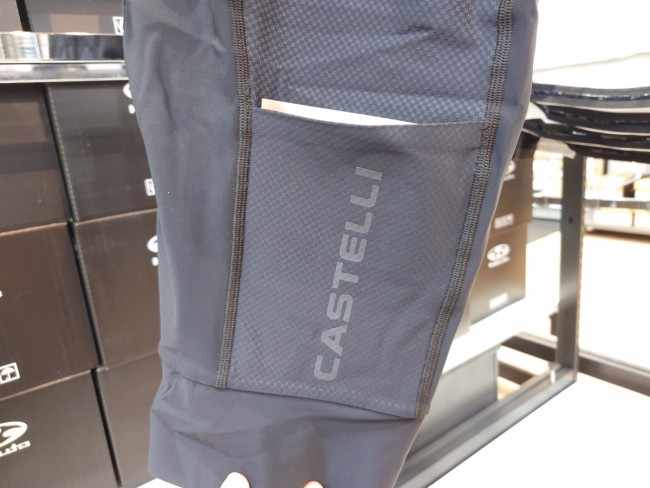 さらにこのビブの特徴は、なんといっても「ポケット」。両脚の外側にカーゴポケットが付いていて、必要なギアをしっかり収納できます。ポケットは収納時には体にぴったりフィットし、荷物が揺れたりズレたりしない設計になっています。