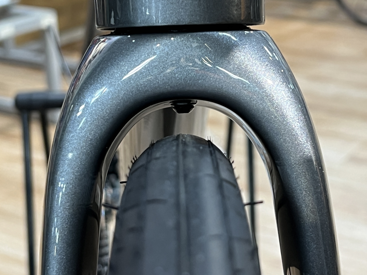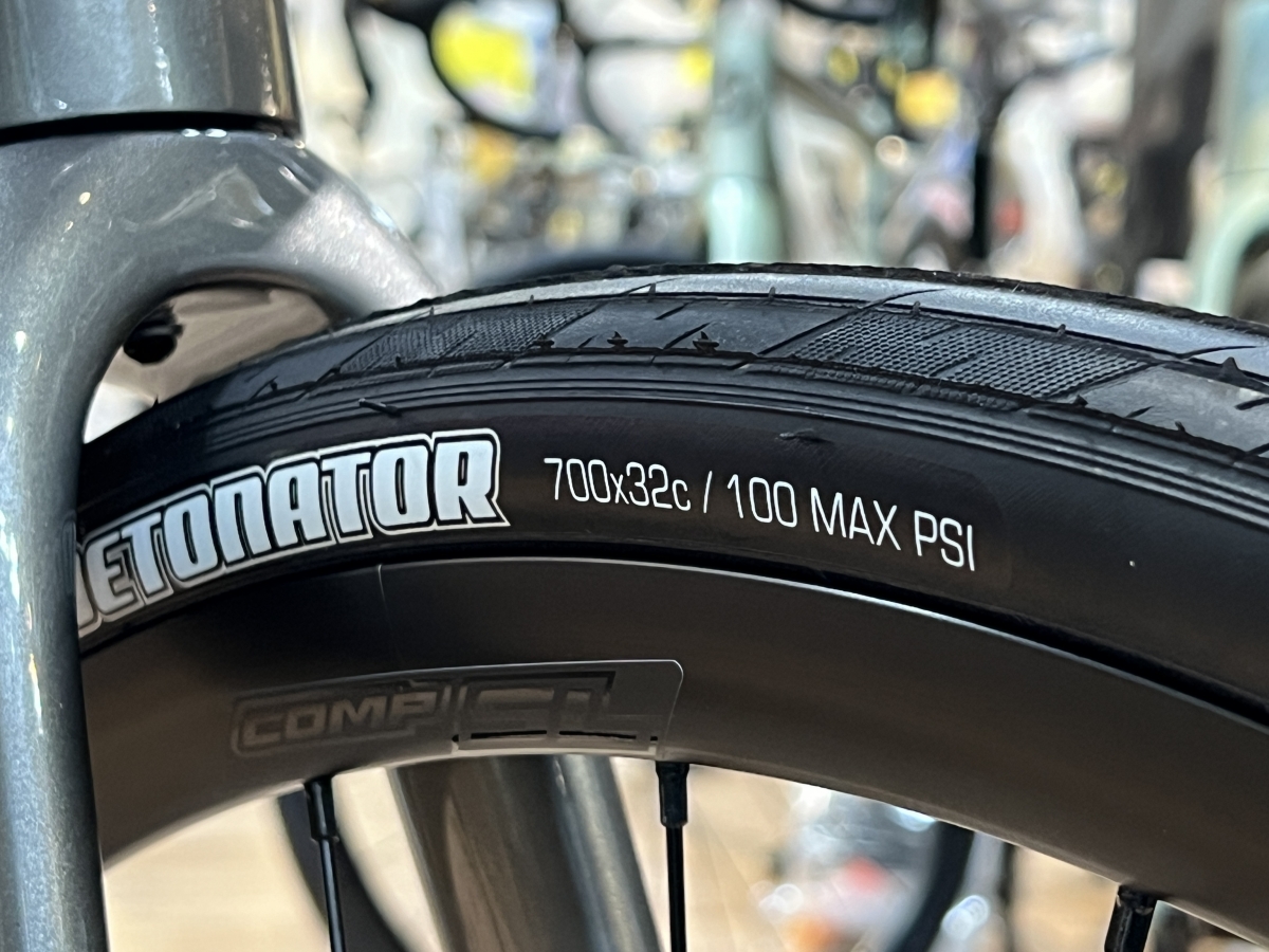 一般的なロードバイクよりも一回り太いタイヤを標準装備しているのも、見逃せないポイントです。