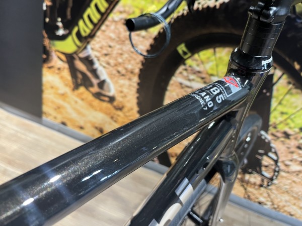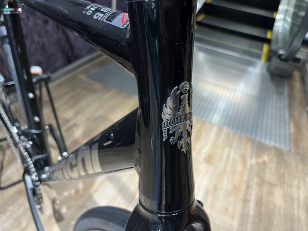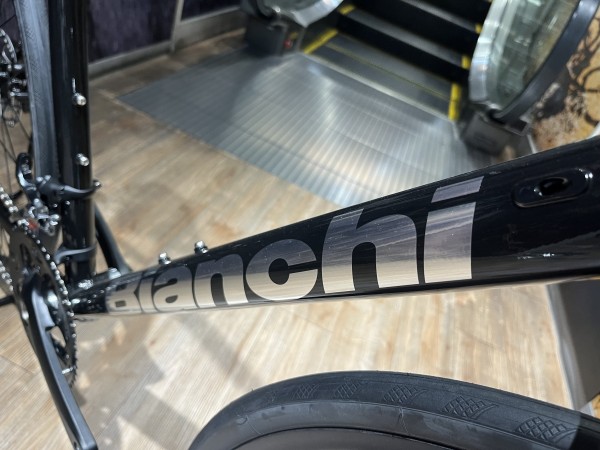 エントリーモデルでもしっかりキラキラしたラメが全体にちりばめられたブラックに塗装されておりヘッドチューブ中央にはビアンキを象徴するエンブレムが宝飾されています!