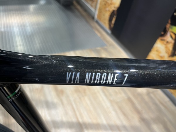 ↑ トップチューブ後部にはBIANCHIロゴと同色のVIA NIRONE7