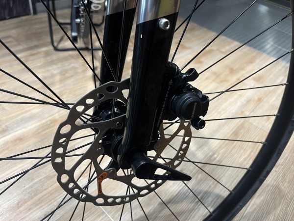 ビギナーでも使いやすいアルミのフレームのニローネ7ですが、フォークはフルカーボンになっており乗り心地の向上とハンドル周りの振動軽減につながる為、路面の振動を拾いやすいロードバイクでもカーボンフォークだと楽にライド出来ます!!