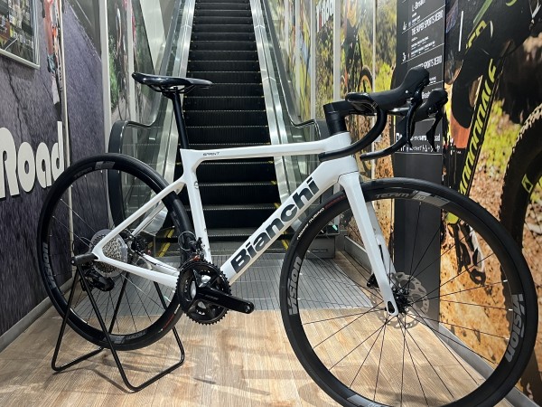 今回ご紹介するダークグレーは全体的に細かくラメがかったパールホワイトにペイントされており、ダウンチューブのBIANCHIロゴは奇麗なラメのネイビーになっており上品な一台だと思います。