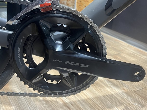 コンポーネントは最新のシマノ105機械式 油圧ディスクブレーキが搭載されており、安心のブレーキングとスムーズな変速です。