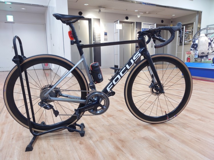 黒の自転車にアンバーカラーのタイヤ、めちゃくちゃカッコいい…