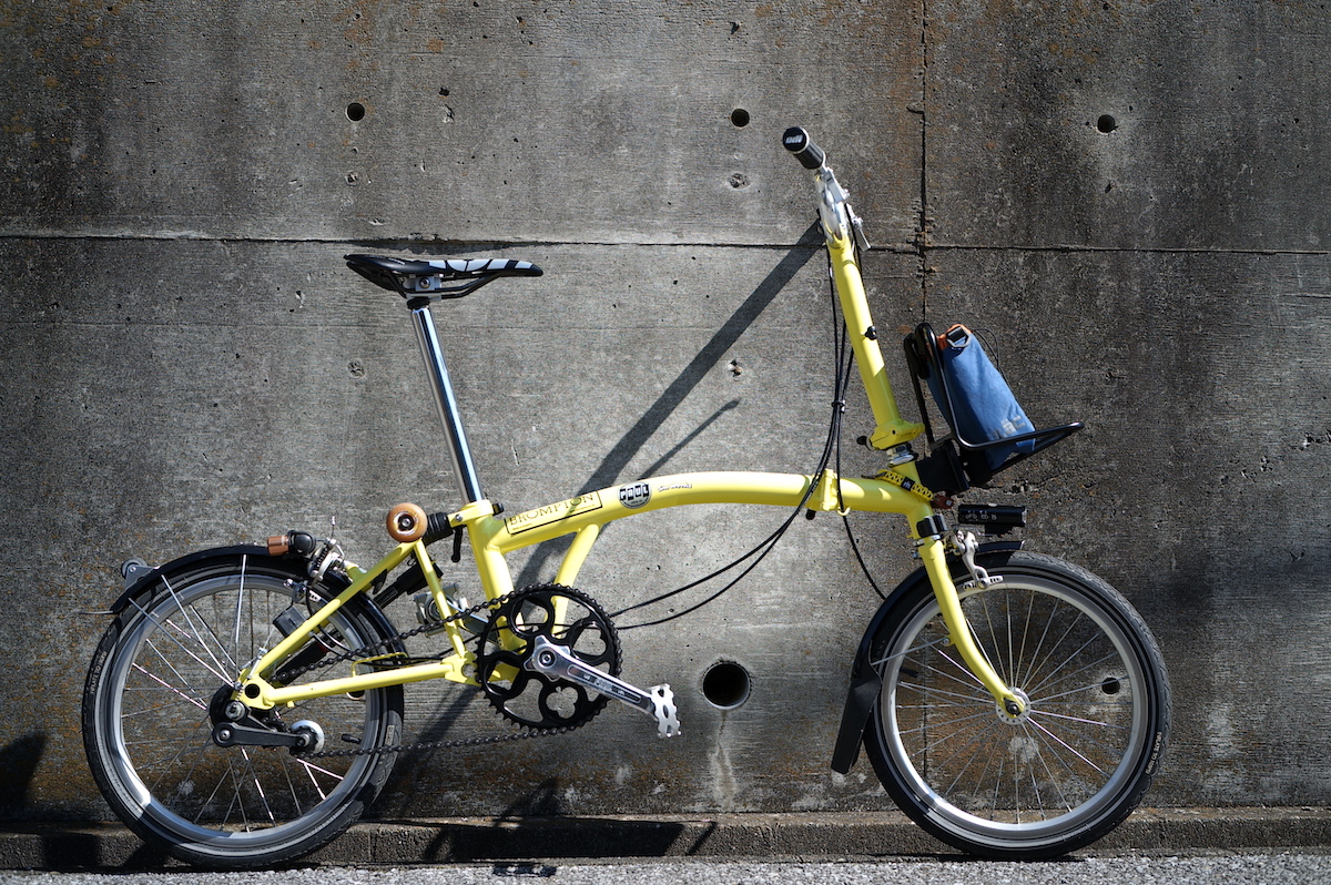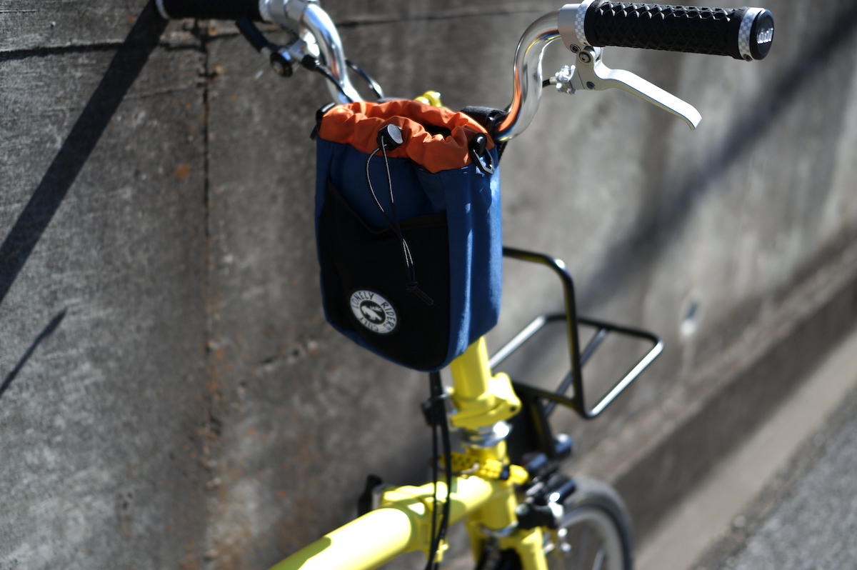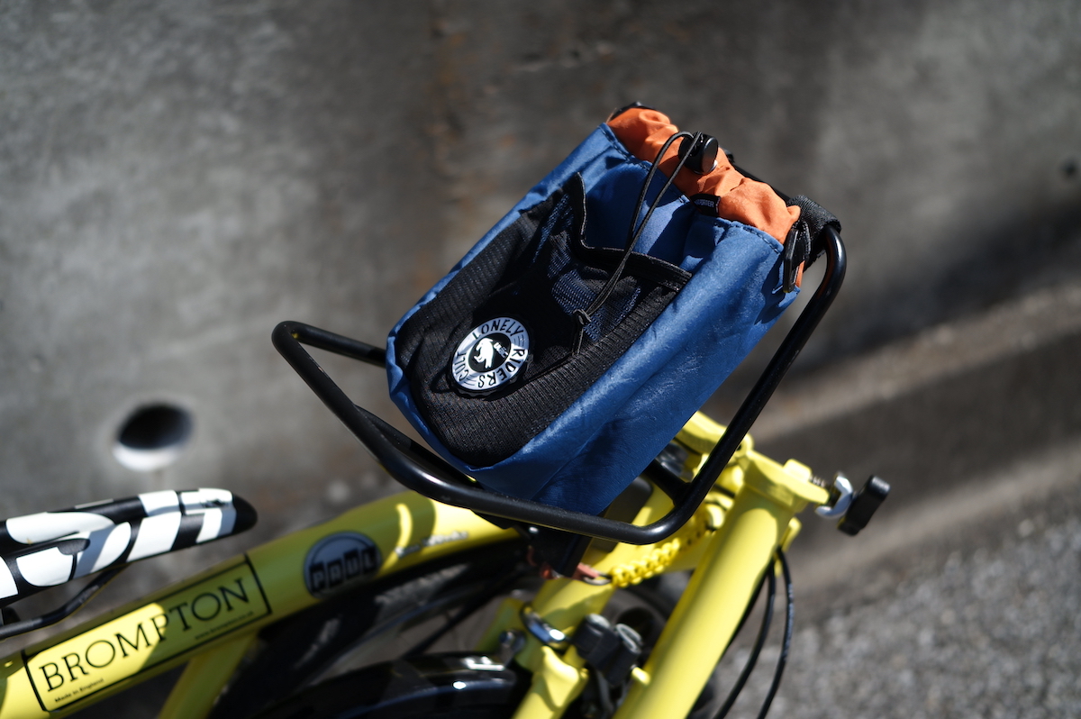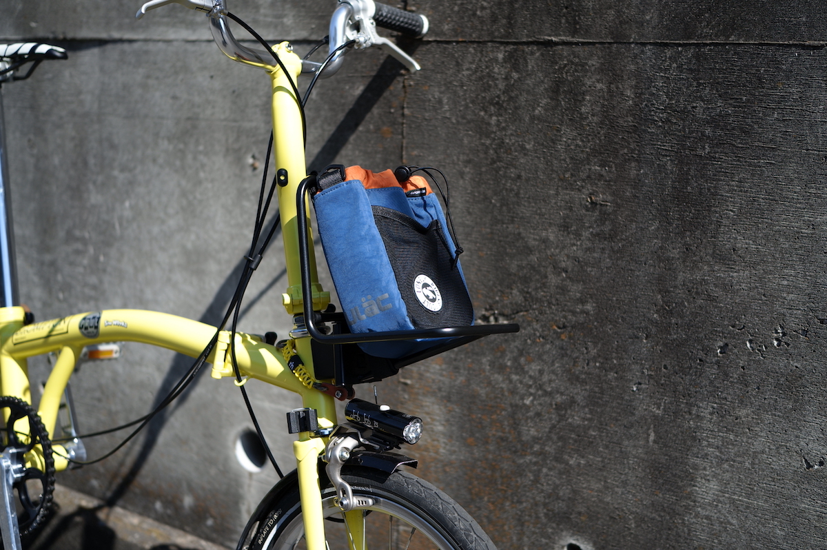 BROMPTONにも良さそうかなと、ハンドルに取り付けてみました。ペットボトルなんかいれても使い勝手がよさそうですが、