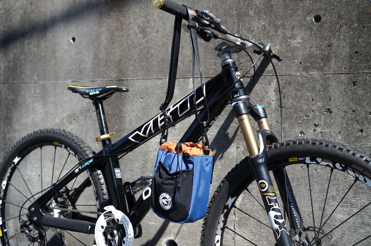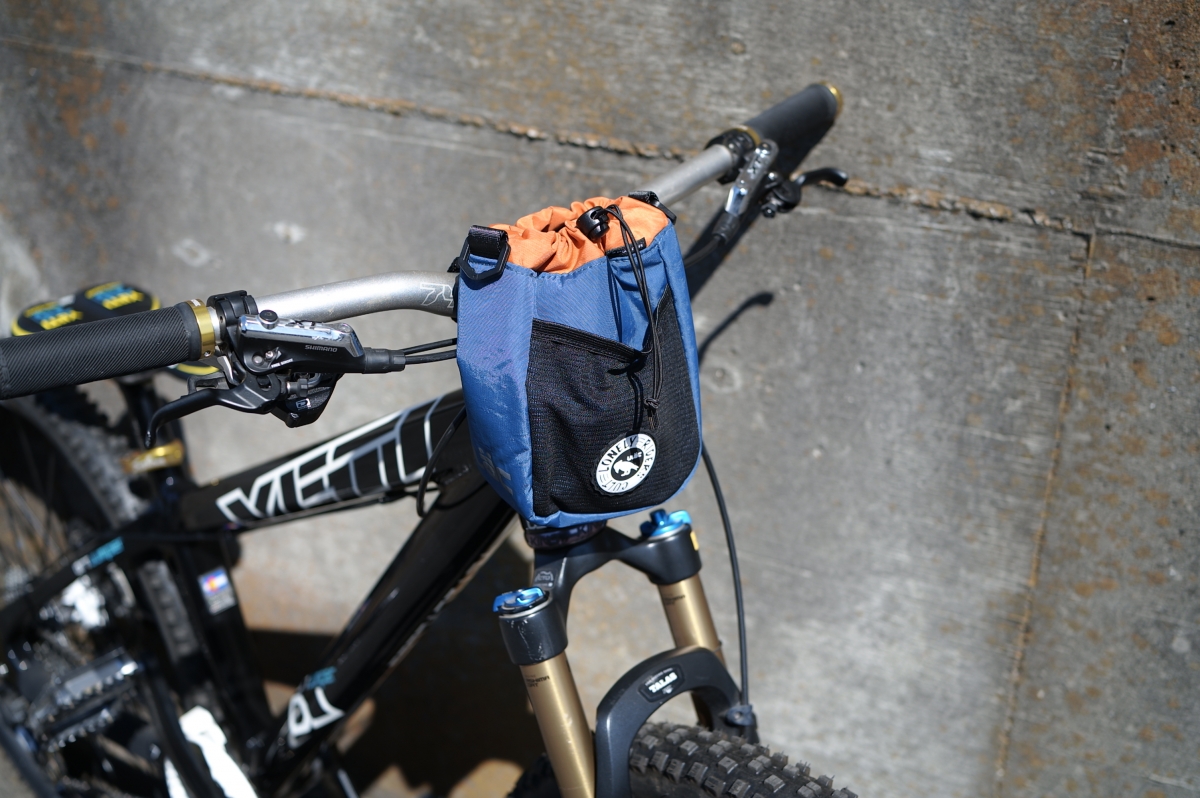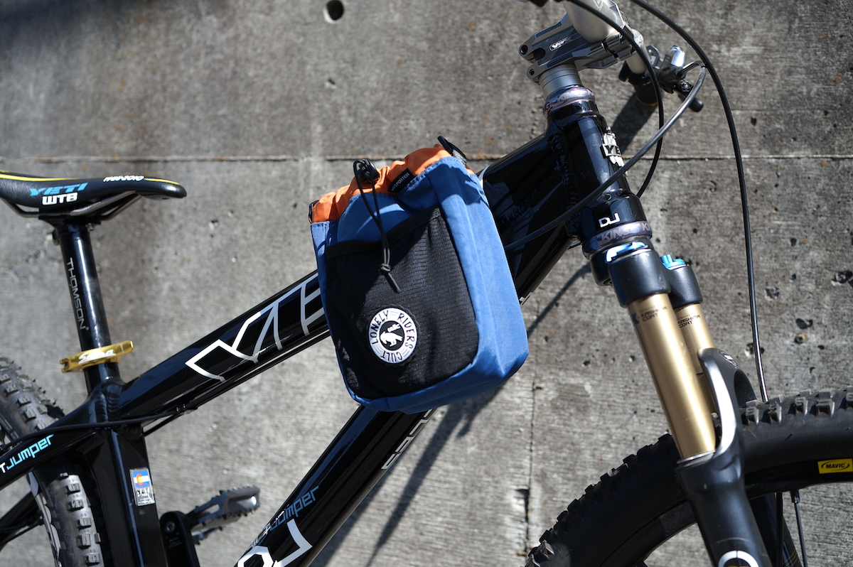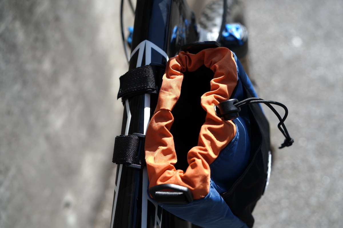 容量は2.2L。ハンドルバーやトップチューブに3本のベルクロで取り付けるバッグです。側面にはメッシュのポケットが付いています。
