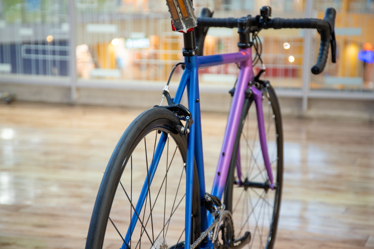 フロントと異なりコンパクトにまとまったリアトライアングルは反応性の高さを実現。ダボ穴を配置することでキャリアの装着といった拡張性を施すことで普段のサイクリングだけでなく、ツーリングバイクとして休日を楽しむといったことも可能でとなっています。