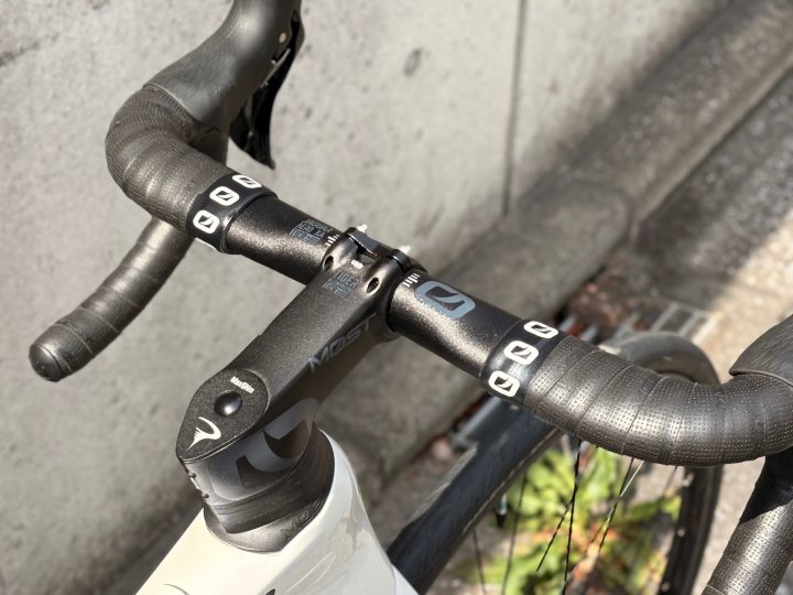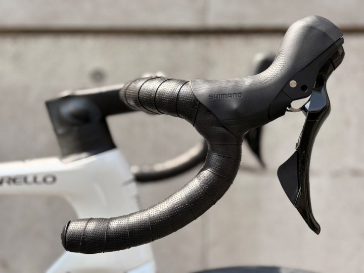 PINARELLOはこのグレードの完成車でも、マトモに使えるハンドルやサドルが採用されています。