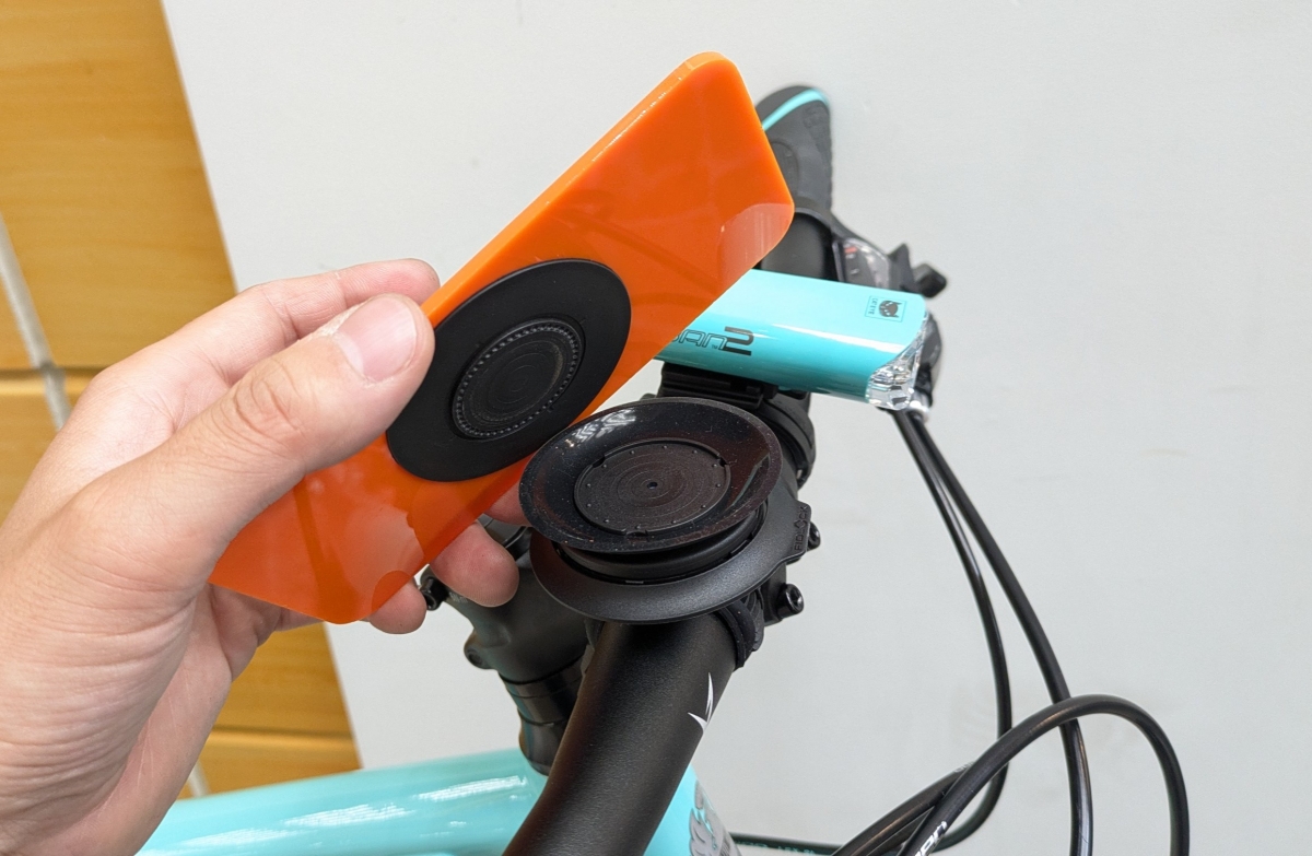 このFIDLOCKは従来のスマホホルダーとは異なり磁力と吸盤の力で付いており、台座の乗せるだけで固定する事ができます。