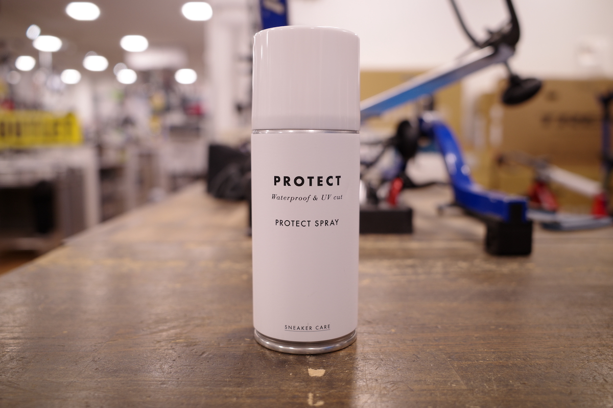 購入時の使用前のファーストケア、または「FOAM SHAMPOO PLUS」でキレイにした後に使用していただきたいのが、高性能防水スプレー「PROTECT SPRAY」です。コーティングすることにより、シューズを雨や汚れ、紫外線から保護します。