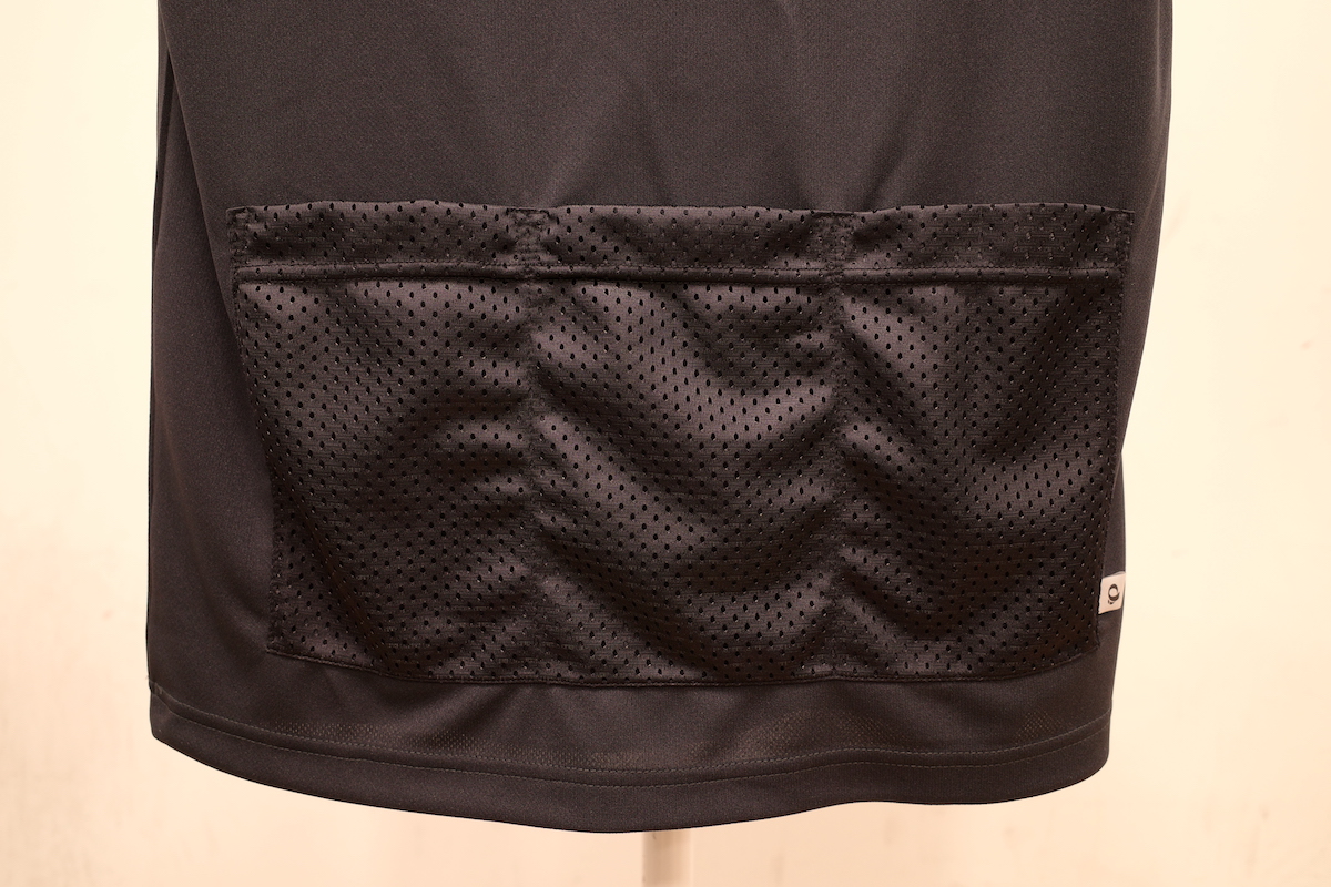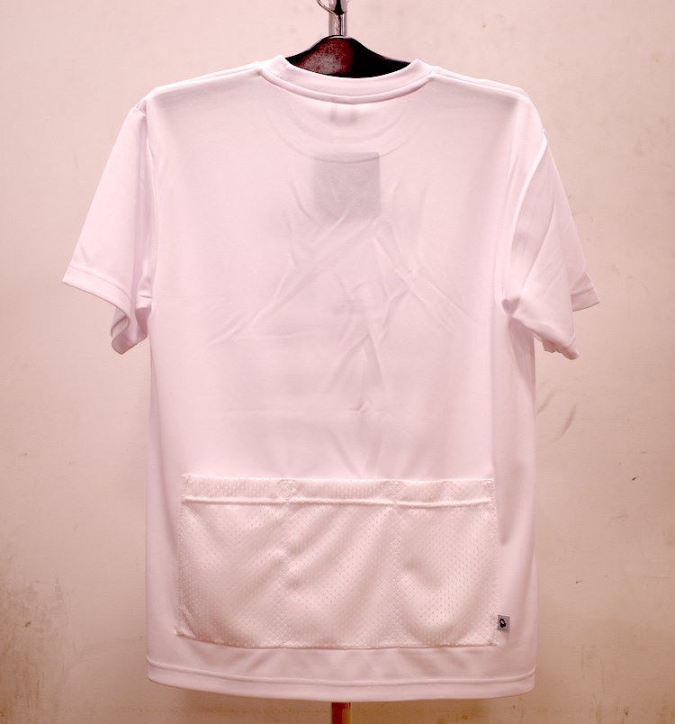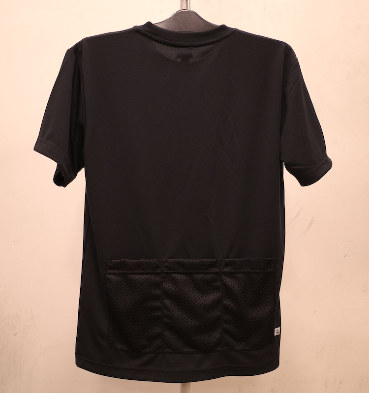 吸汗速乾性のある生地を使用し、背面にはメッシュの3分割ポケットを配置したTシャツ。