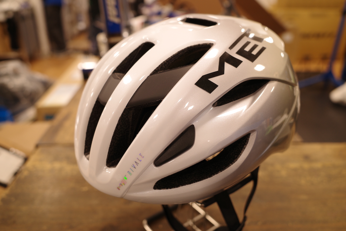 ポガチャル選手が使用するヘルメットブランドとしても注目を集める「MET」。そのラインナップの中でも、優れた機能性と高いコストパフォーマンスによって人気の高い「RIVALE MIPS AF」。光沢とマットのツートンのブラックカラーも人気ですが、いつも先に在庫がなくなるのは、ホワイトカラー。今回も一旦店頭から姿を消していましたが、再入荷してまいりました。